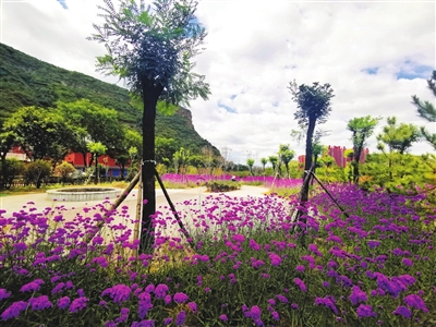 8月30日,古交市滩上桥头小游园内,马鞭草花开得正艳。结合农村人居环境“六乱”整治,古交市园林绿化中心加大城乡接合部绿化美化力度,对滩上桥头垃圾场进行清理整治,并在此处建成一个近万平方米的游园,栽植油松、金枝槐、云杉、白蜡、紫叶矮樱等14个品种的常绿树及花灌木。同时栽植鸢尾、二月兰、马鞭草等开花类地被植物,既美化了周边环境,又为附近村民提供了一处休闲健身的场所。徐方伟 摄