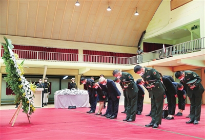 上图:9月1日,在韩国仁川,中方代表团成员在志愿军烈士遗骸装殓仪式现场鞠躬致敬。