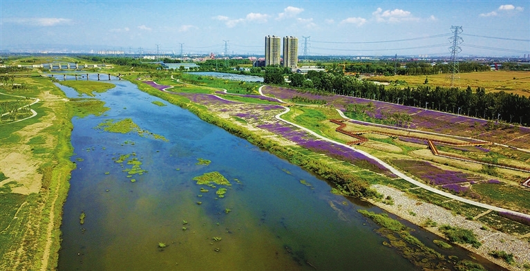 9月11日,在汾河百公里中游示范区晋源段,虽不见泛舟河上,但一眼望去,河岸似彩色飘带蜿蜒迤逦,水流舒缓,水质清澈。波光粼粼的水面上,多年未见的水鹭时而贴水飞翔,时而振翅齐飞,或自由自在地在绿洲浅滩上休憩活动。三三两两的游人或驻足拍照,或漫步河堤,尽显秋日静谧辽阔,“河畅、水清、岸绿、景美”的盛景重现。
