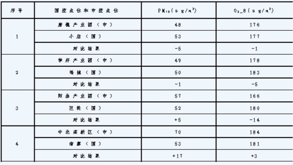综改示范区、中北高新区市控点位与临近国控点位 一周环境空气质量主要指标对比情况公示