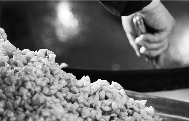 刀起刀落,面粉飞扬之余,案板上很快便堆起了一厘米见方的面山。一口大锅落稳灶口,半锅暗黄的胡麻油下锅,风箱的叭哒声中,红红的火苗舔着锅底,照亮了墙壁与屋顶。