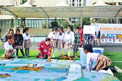 9月27日,万柏林区凤凰双语第二实验小学开展“关注交通安全 呵护儿童成长”主题安全教育活动。该校邀请天龙救援队队员给同学们宣传交通安全知识,并通过互动游戏,了解相关急救知识。 李学军 宋卫东 摄