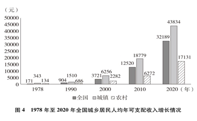 图4 1978年至2020年全国城乡居民人均年可支配收入增长情况