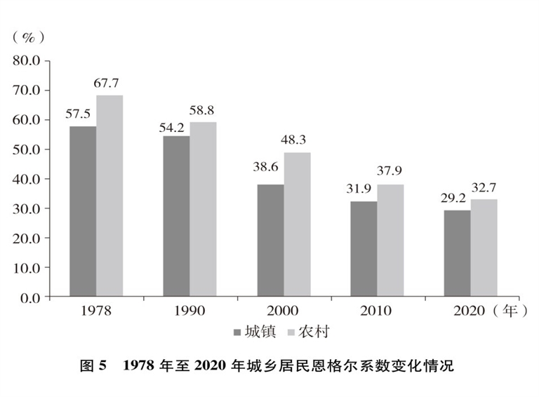 图5 1978年至2020年城乡居民恩格尔系数变化情况