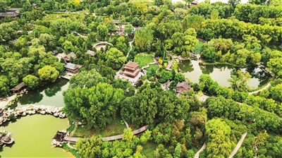 9月28日,晋祠公园里,亭台隐藏在葱郁的树木之中,展现了北方园林的美感。我市东西山生态绿化扎实推进,与晋祠、龙泉寺等旅游景点和30处城郊森林公园,构建起融合绿色生态、承载人文历史、传承三晋文化的景观长廊。 李学军 摄