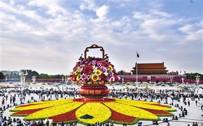 天安门广场“祝福祖国”主题花坛成热门打卡地