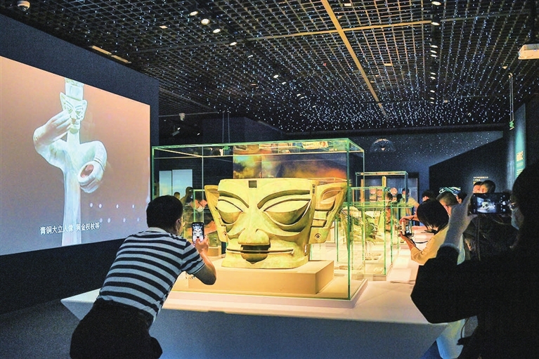 展览以巴蜀、荆楚、吴越这三个长江流域的主要青铜文化圈为主线,将展览内容与长江水文、地域风貌、诗词歌赋巧妙结合。值得一提的是,三星堆今年“上新”的三件重要文物也在本次展览中首次对公众展出。