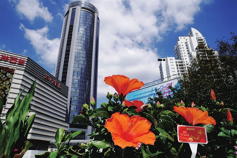 9月30日拍摄的上海街景。国庆将至,鲜艳的五星红旗和各种鲜花将上海街头装饰一新。