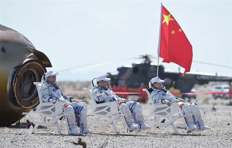 神舟十二号载人飞船返回舱在预定区域成功着陆。在太空驻留3个月的航天员聂海胜、刘伯明、汤洪波安全顺利出舱,中国载人航天空间站阶段首飞完美收官。