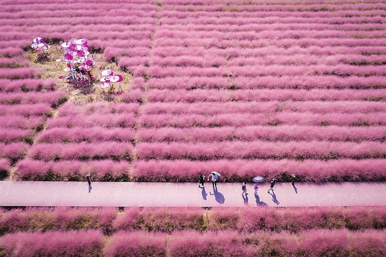 | 10月2日,游客在南京市溧水区郭兴庄园游玩(无人机照片)。 新华社发 (苏 阳 摄) |