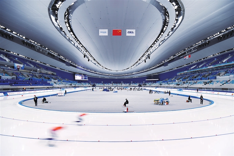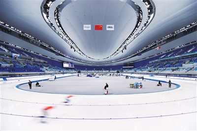 10月8日,参赛选手在男子500米比赛中。当日,“相约北京”系列冬季体育赛事速度滑冰中国公开赛在北京国家速滑馆开赛。 新华社记者 陈益宸 摄
