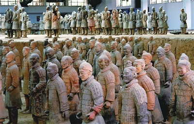 陕西秦始皇陵兵马俑坑的发掘,让“势如彍弩,节如发机”的泱泱秦军重现人间,为研究秦代历史、军事制度及文化艺术提供了宝贵的实物资料,彰显中国历史上第一个大一统王朝的恢弘气象。