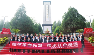 近日,浦发银行太原分行党员代表前往太原市黄坡革命烈士陵园,开展党史学习教育暨“缅怀革命先烈、传承红色基因” 主题党日活动,并向烈士敬献花篮。