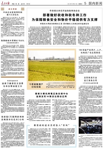 部署做好秋收和秋冬种工作 为保障粮食安全和物价平稳提供有力支撑