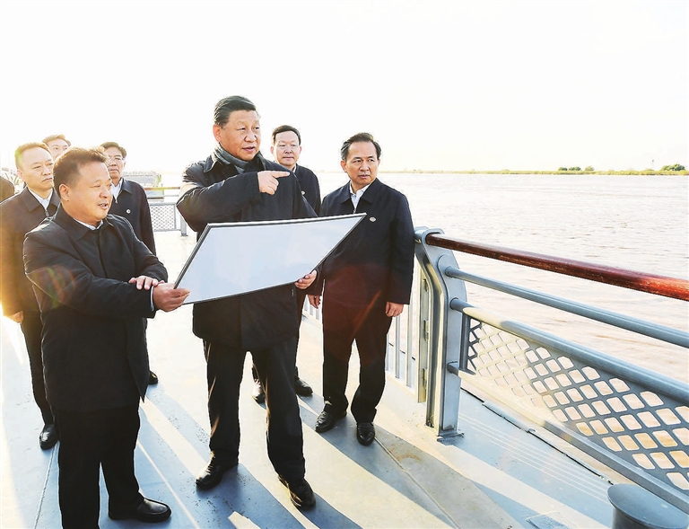习近平听取了黄河三角洲国家级自然保护区情况汇报,沿木栈道察看黄河三角洲湿地生态环境。他指出,党的十八大以来,各级党委和政府贯彻绿色发展理念的自觉性和主动性明显增强,一体推进山水林田湖草沙保护和治理力度不断加大,我国生态文明建设成绩斐然。黄河三角洲自然保护区生态地位十分重要,要抓紧谋划创建黄河口国家公园,科学论证、扎实推进。习近平强调,在实现第二个百年奋斗目标新征程上,要坚持生态优先、绿色发展,把生态文明理念发扬光大,为社会主义现代化建设增光增色。