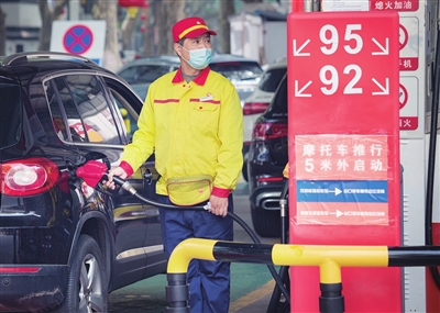 10月22日,江苏省南京市一加油站的工作人员给汽车加油。继10月9日大幅上调后,国家发展改革委10月22日称,根据近期国际市场油价变化情况,按照现行成品油价格形成机制,自2021年10月22日24时起,国内汽油、柴油价格每吨分别提高300元和290元。 新华社发