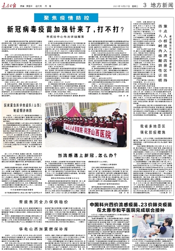 中国科兴四价流感疫苗、23价肺炎疫苗在太原市和平医院完成联合接种