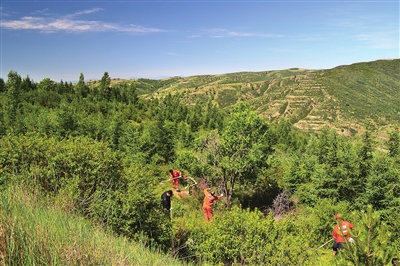马兰镇梅家沟,曾是寸草不生、满目疮痍的废弃矸石山,但现在,草木丰茂,栽植了油松、刺槐等耐旱植物,并搭配黄栌等彩色树种,快速形成景色宜人、生态和谐的自然景观。矸石山变了样貌后,市民王改转特意带家人来这里转悠,她说,原来刺鼻的矸石山变成了如今的绿色生态园,一眼望去,尽是花草树木,让人流连忘返。