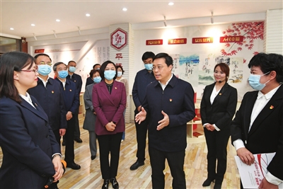小店区亲贤长风商圈党群服务中心是以街道党工委为核心、各非公领域党组织为基础、辖区驻地单位党组织等多方力量参与的城市基层党建共同体。韦韬来到中心大楼,结合“党建地图”了解党建组织架构,走进城市书房、企业家会客厅、政治生活馆,察看公共服务平台建设及使用情况,详细了解“我为群众办实事”项目清单及办理进度,对商圈党委坚持党建引领服务发展,推动各领域党组织有机联结的做法表示肯定。他强调,要强化“非公”组织专属党建服务,创新工作方式方法,将党建工作全面融入“非公”企业组织体系、文化建设、生产经营、社会责任各个方面,用党史学习教育成果助推企业高质量发展。