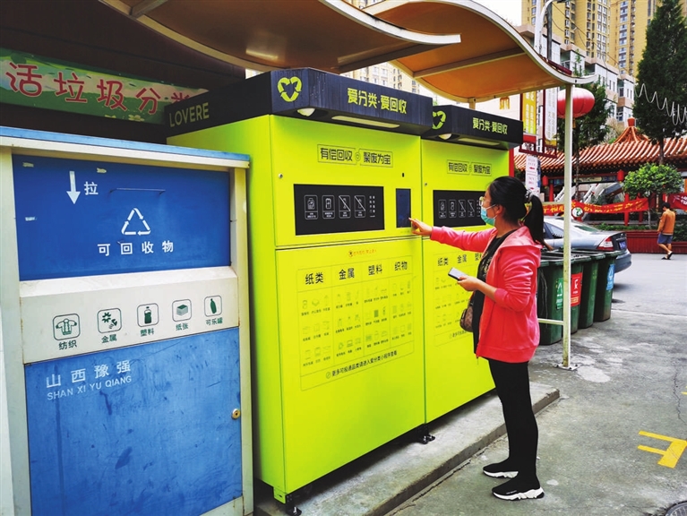 智能垃圾分类回收机类似无人售货机。“来,先扫扫这个显示屏上的二维码,然后根据语音提示进行操作就行了。”李阿姨熟练地掏出手机扫码后,投物箱口缓缓打开,根据语音提示,她把3个饮料瓶和已经压扁的废纸盒投入箱内,系统很快识别出投入的物品,并完成了称重。李阿姨的手机上也显示,这次废品回收她“挣”了1元钱。