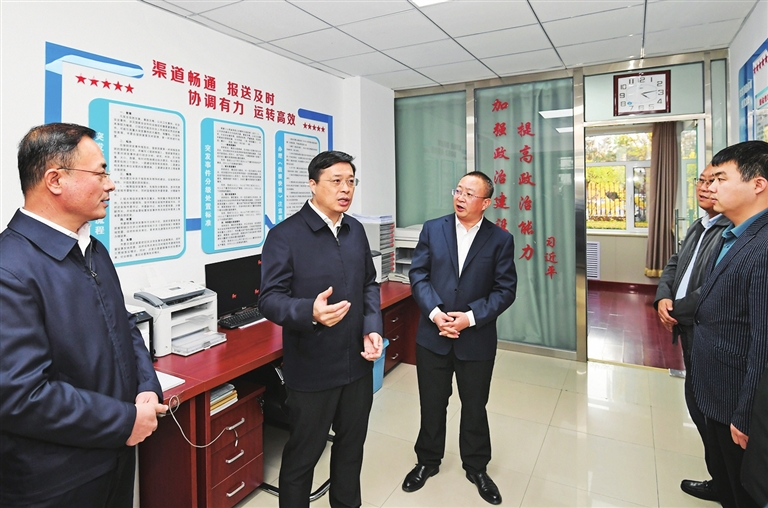 在市委政法委,韦韬强调,政法机关承担着依法保障和服务经济社会发展的重要职责,要全面贯彻习近平法治思想,深入推进社会治安防控体系建设,常态化推进扫黑除恶,依法打击惩治违法犯罪活动,努力建设更高水平的平安太原、法治太原;广泛借鉴先进城市做法,践行新时代“枫桥经验”,强化“全科网格”服务管理,切实把政治优势转化为治理优势;巩固提升政法队伍教育整顿成果,打造政法铁军,为全方位推动高质量发展保驾护航。