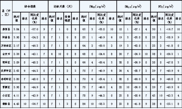 综改示范区、中北高新区市控点位与临近国控点位一周环境空气质量主要指标对比情况公示