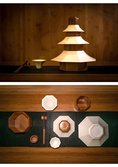 一套名为《塔食》的宝塔形餐具,在旅游商品创意设计区显得清雅别致。《浪淘沙》扎染系列、《寻晋》冰箱贴系列、《潮关帝·趣山西》系列……展品大多是古代文化元素与实用器具的巧妙结合。