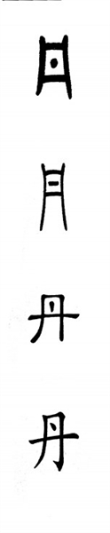 “丹”字为象形文字,本义为朱砂。从字形上看,它很像一口四四方方的矿井,中间有一个圆点,表示矿井中有朱砂。《说文》:“丹,巴、越之赤石也。”意思是说,丹是西南地区出产的朱砂。 “丹”亦引申为朱红色,深秋时节,“丹枫漫山”。“丹”还表示赤诚,文天祥曾赋诗曰:“人生自古谁无死,留取丹心照汗青。”另外,因道家炼药多用朱砂,所以“丹”也指古代方士炼制的“长生不老药”。现在这个字更常用于女性人名中。