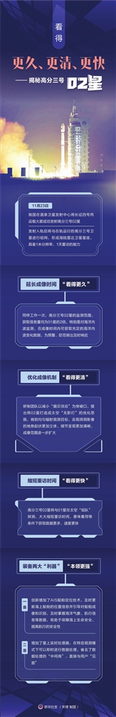 据新华社酒泉11月23日电 (李国利、奉青玲) 11月23日7时45分,我国在酒泉卫星发射中心用长征四号丙运载火箭,成功将高分三号02星发射升空。卫星顺利进入预定轨道,发射任务获得圆满成功。