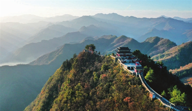 11月23日拍摄的庙山寨景区(无人机照片)。位于陕西省安康市白河县的庙山寨景区,主峰庙山雄伟挺拔,周围森林密布,自然风光秀丽。 新华社发
