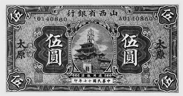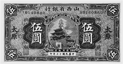 晚清时期山西票号、账局、钱庄的聚集地——太原钟楼街,到了民国初期成为“金融中心”,占据太原货币金融市场90%、辐射全省范围的山西省银行、银号、金融委员会等组织机构,各类、各级行号,应有尽有,基本上都集中在这一区域,并且以此为“调度中心”,包括花花绿绿的纸币票据,也由此而飘飞三晋大地。1928年,中原大战爆发前,山西省银行曾经将“太原钟楼”作为图案,印制在“伍圆”本币上,全省流通,或许有一些伴随着中原大战,流通于整个华北地区。最近20年来,伴随着文物收藏和文物市场的活跃,学者以及地方文化爱好者藉此整理“无形之手的体系结构”,民国时期金融组织机构的准确称谓和资金情形及其金融运作方式,愈来愈清晰。这些有力地证明:太原城商贸的金融升级、飞跃性变革,太原钟楼街依然是中心。
