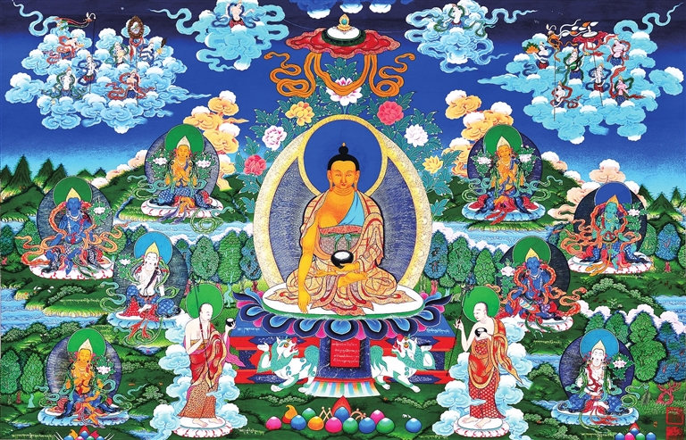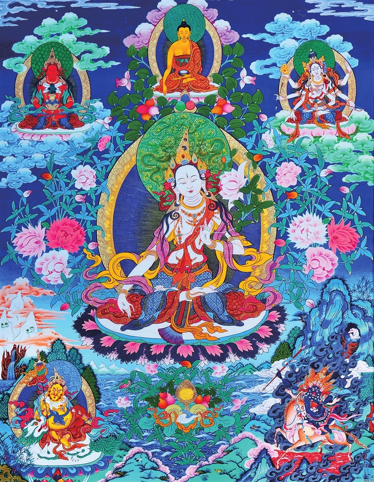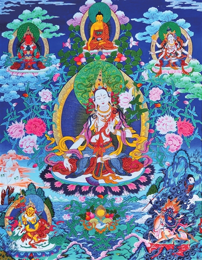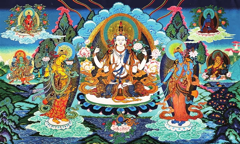 谢宝明先后创作了《白度母》《四臂观音》《文殊菩萨》《三世佛》等作品,受到国内外业界的肯定和称赞。