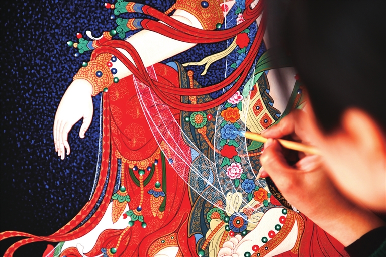 山西宝嘉唐卡艺术研究院的谢宝明,就是“点燃”这斑斓的实践者。
