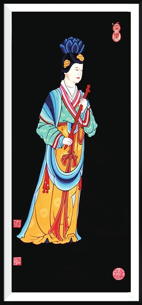 谢宝明认为,汉风传统彩绘,是以汉族传统绘画形式为基础,兼容唐卡绘制技艺,在造像、开脸、构图、设色等方面,以汉族特有的优雅、内敛、高洁的精神追求和审美情趣,表现汉族题材或具有汉族审美特点的彩绘艺术。