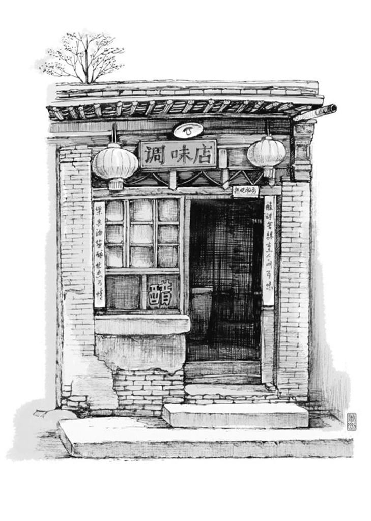 在综合商店的西面是一家调味店,店里净是放醋、酱油和腌菜的缸子、坛子,都是酱色粗瓷,所以调味店给我的印象是酱的颜色、醋的味道,售货员也好像酱菜一般。不像现在醋都是瓶装和袋装,摆放在超市里。