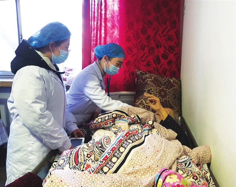 97岁的老人此前臀部被烫伤,子女也都年逾古稀,不方便住院治疗,家庭医生和责任护士了解到情况后及时上门,为老人处理伤口,定期上门清创、更换尿管、监测血压等,针对性地指导用药。
