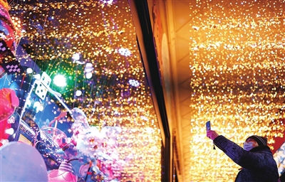 12月2日,在法国巴黎,人们拍摄商店的圣诞橱窗。 新华社/欧新