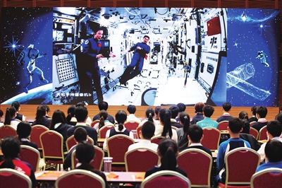 干货满满的授课中,三位“太空教师”演示了微重力环境下细胞学实验、人体运动、液体表面张力等神奇现象,并讲解了实验背后的科学原理。航天员还与地面课堂师生进行了实时互动交流。