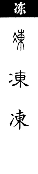 “冻”字本义为冰冻,是一个形声字。该字左边为“冫”,古文字形看上去很像冰块,意思是水冻成冰;右边为“东”,表示字音。在古代,“冻”还用作名词,意思是厚厚的冰。