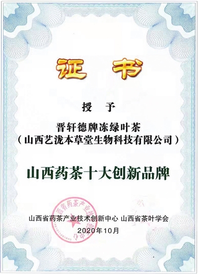 山西药茶产业得到了省委、省政府的高度重视。因此山西艺泷本草堂生物科技有限公司在许多科研、院校等部门的大力帮助支持下,吸收了传统六大茶系制茶工艺的优点,形成了独具特色的晋轩德冻绿叶茶。