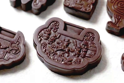 近年来,用食材制作文创产品成为潮流。比如,故宫、山西博物院等多家景区推出的造型雪糕成为网红食品,颇受游客青睐。“70后”孙晟,从事设计多年,他在设计文创作品时,想到的原材料是巧克力。