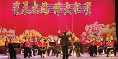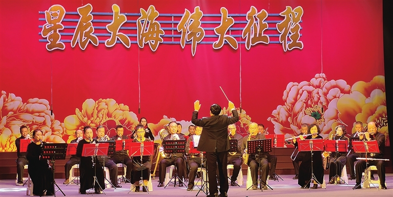 12月18日,太钢集团举行庆祝中国宝武“公司日”主题文艺汇演。由退休人员组成的“幸福时光”铜管交响乐团参加了表演。66岁的指挥龙林抬手间,交响乐版《唱支山歌给党听》响起。乐曲深情而绵长,缓缓淌进观众心田。张国英 摄