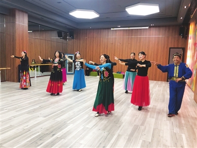 扬眉动目、晃头移颈、拍掌弹指……伴随一段热闹的维吾尔族音乐,一张张自信的笑脸、一组组默契的配合,呈现出一幅欢快的场景。