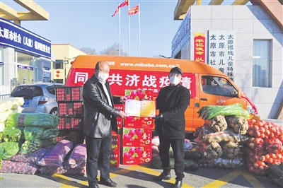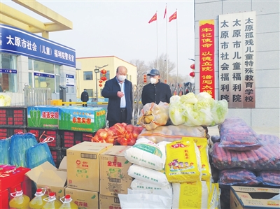 马文志带领市场有关部门负责人到太原市儿童福利院,为坚守在这里的工作人员及儿童送去了百余袋蔬菜、水果等生活必需品。