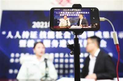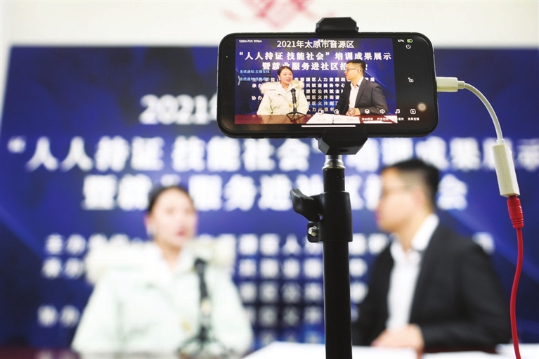 12月24日,由晋源区人力资源和社会保障局主办,就业进社区招聘会在兰亭御湖城社区举行,首次采用“直播推介+线上平台互动”的方式,现场招聘706人。