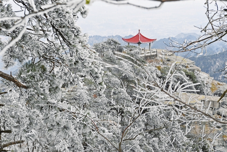 12月26日拍摄的庐山风景区雪景。近日,江西庐山迎来降雪。皑皑白雪将庐山装扮得银装素裹,宛如童话世界。 新华社记者 万 象 摄