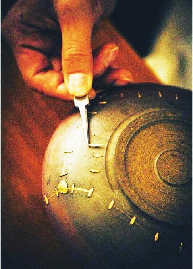 故事讲完,学员到齐,老师正式讲课了。他捧着小壶,左右端详,然后开始操作,剪下的钢圈像棉布一样顺从地与壶盖贴合,一掂、一拈、一挑、一抹……手指犹如在跳舞,让人眼花缭乱,不一会儿,手中的成品便让大家目瞪口呆。