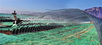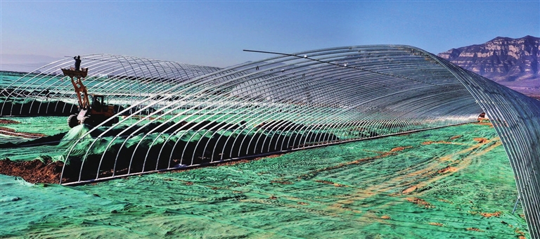12月29日,阳曲农投现代农业科技示范产业园施工建设工地上,工人们正在搭建温室。该园作为省级重点建设项目,为建设太忻一体化经济区打造了全省现代农业样板。 韩双喜 摄
