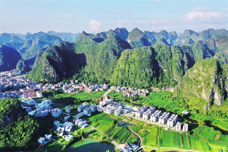 这是广西都安瑶族自治县东庙乡乡村风貌(9月2日摄,无人机照片)。一年来,广西大力实施人居环境提升行动,统筹县域城镇和村庄规划建设,扎实推进乡村建设行动、乡村风貌提升行动,持续推进村庄绿化、美化、净化、亮化建设,一个个美丽村庄不断涌现。新华社记者 陆波岸 摄
