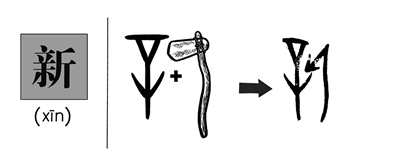 “新”在古代是象形字,与“薪”字相通,是“薪”的本字。其字形左半部是木,代表树木;右半部是斤,代表斧头。两者结合,是刚刚开始伐木,以获取木材的意思。